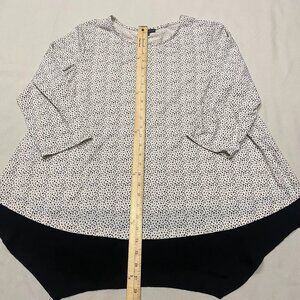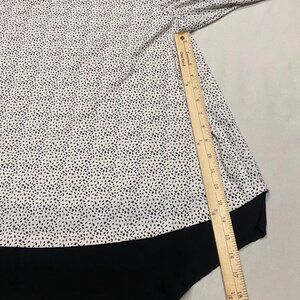 Adrianna Papell Blouse Womens 1X White Black Stretch Shark Hem Pullover Career