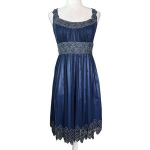Adrianna Papell Blue 100% Silk Heavy Scalloped Beaded Fit & Flare Tulle Dress