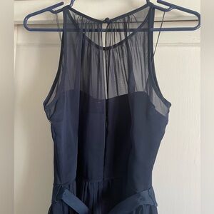 Adrianna Papell Blue Chiffon Beaded Halter Dress. New Without Tags. Zipper At Back. Pockets. Comes With Spare Button On Inside Tag. Two Pockets.
