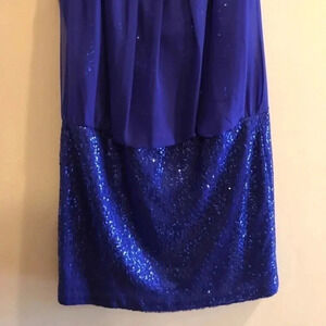 Adrianna Papell Blue Chiffon Sequin Mini Dress 10
