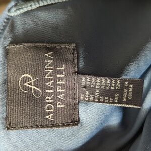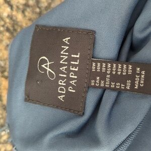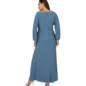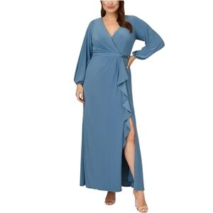 Adrianna Papell Blue Knit V Wrap Top Side Ruffle Slit Maxi Formal Dress NWT