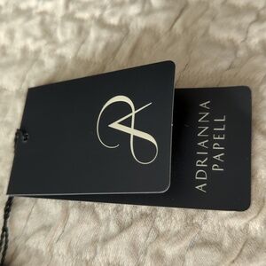 Adrianna Papell creates a sensation with a plus size faux-wrap gown. Made of stretch-enhanced jersey, its finished with chain trim and a cascading ruffle. Chain trim at waist; ruffle and slit at side.