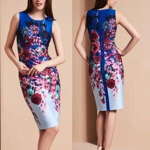 Adrianna Papell Blue Red Floral Scuba Fitted Knee Length Dress Size 6