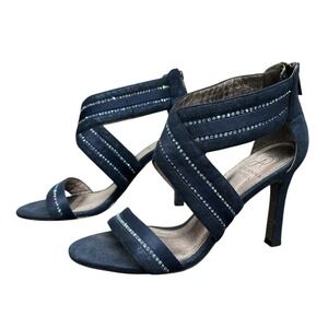 Adrianna Papell Blue Rhinestone Strappy Open Toe High Heel Dress Shoes
