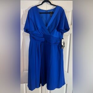 Adrianna Papell Blue Satin crepe flutter dress NWT Size 14W