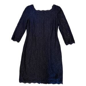 Adrianna Papell Blue Semi Formal 3/4 Sleeve Lace Sheath Dress Size 10P