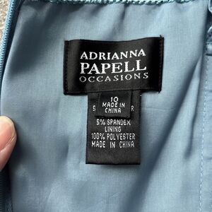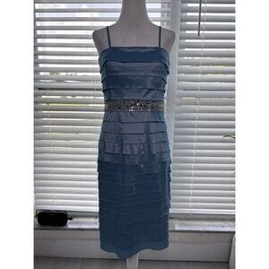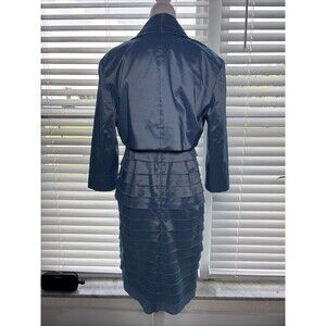 Adrianna Papell Blue Tiered Satin Dress & Jacket Set Beaded Waist Size 10