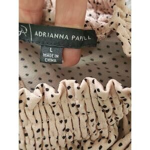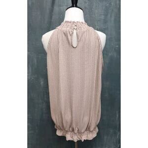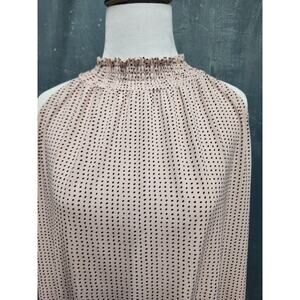 Adrianna Papell Blush Pink Black Polka Dot Knit Blouse High Halter Neck Large