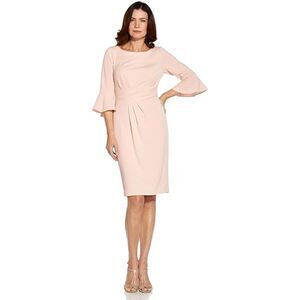 Adrianna Papell Blush Pink Knit Ruched 3/4 Bell Sleeve Sheath Dress Size 4