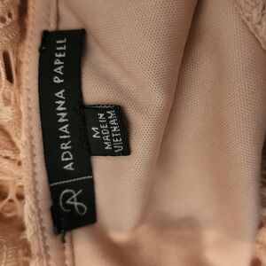 Adrianna Papell Blush Pink Metallic Lace Overlay 3/4 Sleeve Blouse Size Medium