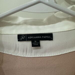 Elegant blush mixed media top featuring a cream collar. Ideal for a sophisticated look. Very comfortable.