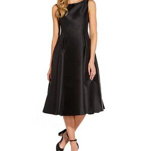 Adrianna Papell Boat Neck Sleeveless A-Line Taffeta Dress Black Size 12