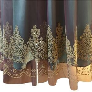 Pattern: Baroque inspired embellishments with sheer overlay.