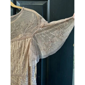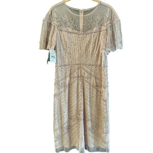 Adrianna Papell Bridal Blush Embellished Mesh Beaded Short Dress Size 10