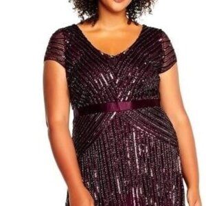 Adrianna Papell Burgundy Sequin Gown