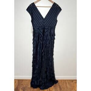Adrianna Papell Cap Sleeve Maxi Dress Gown 10 Navy Formal Mother Of The Bride