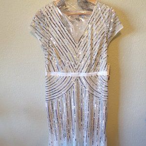 Adrianna Papell Cap-Sleeve Beaded Sequin Gown