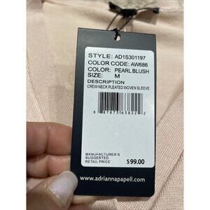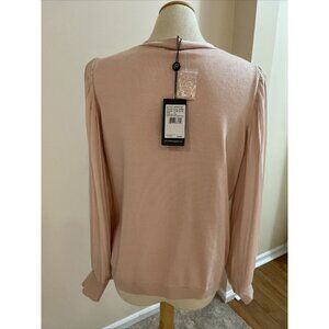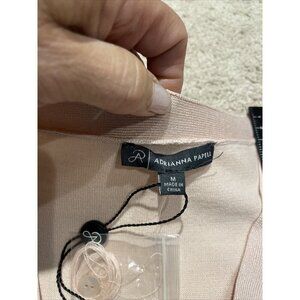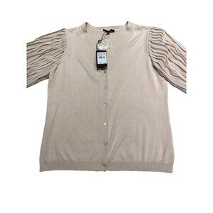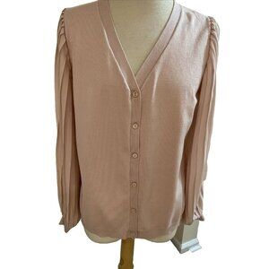 Adrianna Papell Cardigan Sweater Sheer Pleated Sleeves Pearl Blush Sz M Romantic