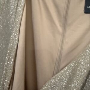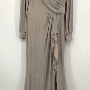Adrianna Papell Champagne Gold Sparkle Wrap Long Sleeve Zip Floor Length Slit