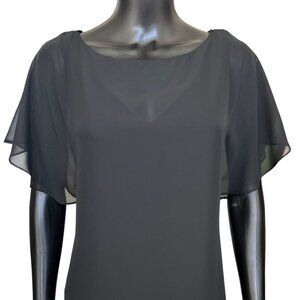 Adrianna Papell Chiffon Overlay Dress Flutter Sleeves Black Midi SZ 12-14 Approx