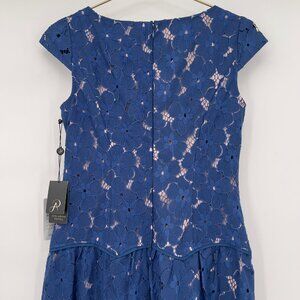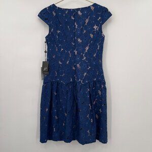 Adrianna Papell Cocktail Blue Floral Lace Fit & Flare Mini Dress Women’s 4 NWT