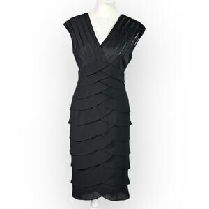 Adrianna Papell Cocktail Dress Women's 4 Black Tiered V-Neck Cap Sleeve