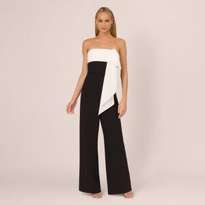Adrianna Papell Colorblock Crepe Strapless Jumpsuit With Bow Accent In Black Whi