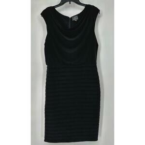 Adrianna Papell Cowl Neck Shutter Pleat Dress Size 8 black