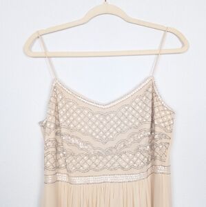 Adrianna Papell Cream Blush Beaded Sequin Spaghetti Strap Gown Size 10