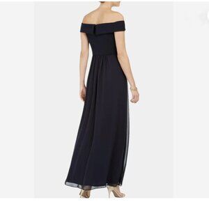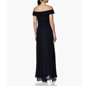 Adrianna Papell Women's Crepe Chiffon Gown New with tags Size: 0 Color: Navy/ Midnight Poised and elegant, a timeless off-the-shoulder silhouette with a knit crepe bodice and soft flowing skirt For evenings out, weddings, and every occasion that calls for celebration This dress pairs perfectly in your bridal party or any special event.