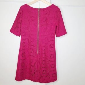 Adrianna Papell Crochet Shift Dress Berry Pink
