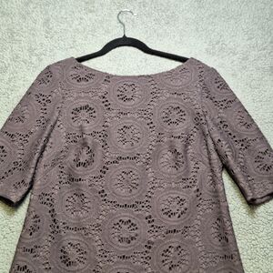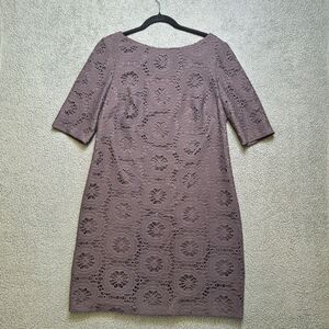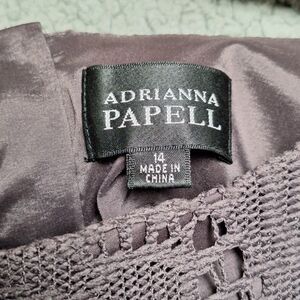 Adrianna Papell Dark Grey/Lace/Embroidered/Boat neck/Sheath/Crochet Style Dress Size 14