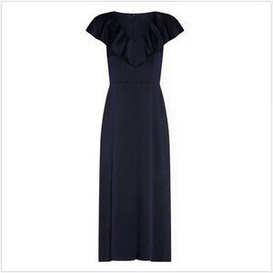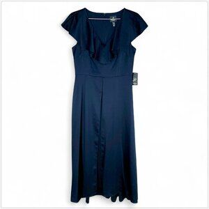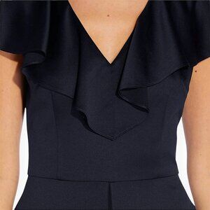 Adrianna Papell Dark Navy Satin Crepe Ruffled Jumpsuit Dress Evening NWT New 8