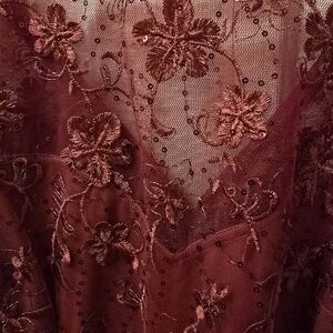 Adrianna Papell Deep Red Floral Lace Dress Size 16 Wedding Guest