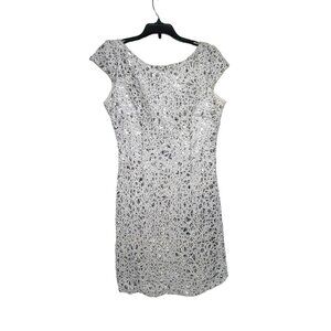 ⭐Adrianna Papell Designer Silver Sequin 3D Mini Cocktail Women's Mini Dress Sz 4