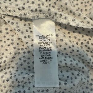 Excellent condition. Elegant sleeveless tunic top by Adrianna Papell in a modern black-and-white abstract dot print. Features a keyhole neckline with tie detail, relaxed tunic silhouette, and lightweight stretch fabric for comfort. Perfect to dress up with tailored pants or wear casually with jeans.