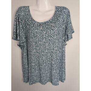 Adrianna Papell Double Flutter Sleeve Top - Size 3X - Green & White Floral Tee