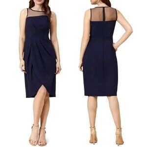 Adrianna Papell Draped Illusion Dress Sz 14 Mesh Top Midnight Blue Witchy Glam