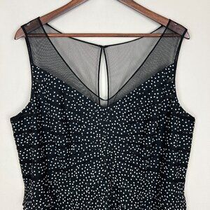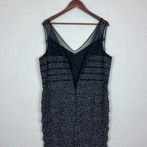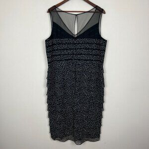 Adrianna Papell Dress 20W Black Tiered Sheath Polka Dot Ruffles Cocktail Mesh