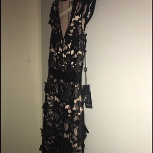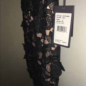 The material underneath is shiny a light tan/rosy color, and it's layered with a gorgeous black lace with big flowers, the flowers are 3D. This dress can be worn for any occasion💃🏽🤗 Size 4