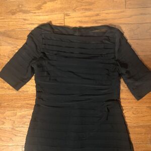 Adrianna Papell Dress Black Sz 0 Sheer Illusion Elegant 3/4 Sleeve Dark Romantic