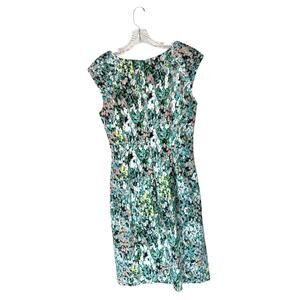 Adrianna Papell Dress Floral Splatter Print Easter Spring Ruched Sheath Size 8