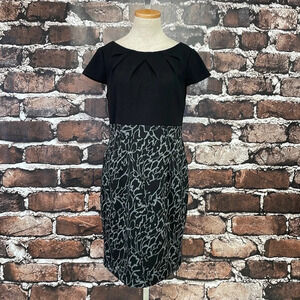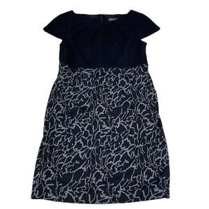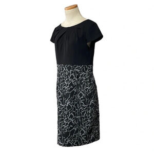 Adrianna Papell Dress Midi Short Sleeve Pleats Black Floral Size 12 Petite P