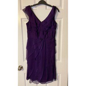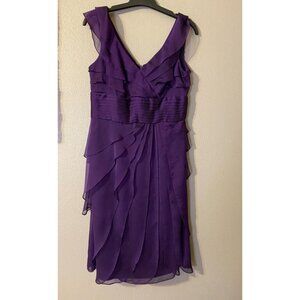 Adrianna Papell Dress Purple 6 Flowy Tiered Ruffles Wedding Party Cruise Date