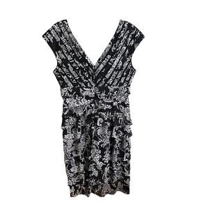 Adrianna Papell Dress SZ 10 Black White Shutter Pleat Sleeveless Sheath V-Neck