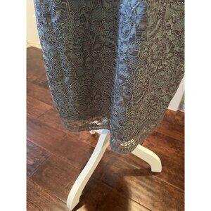 Adrianna Papell Dress Size 12 Grayish-Sage Green w/Gold Shimmer Lace Overlay
