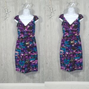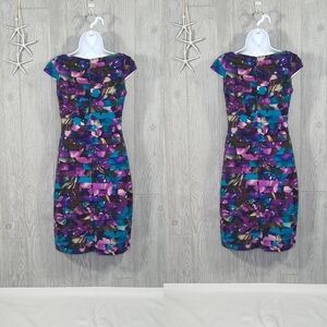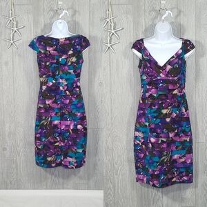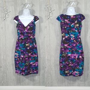 Adrianna Papell Tiered Bodycon Pleated Sheath Dress Size 4 Very nice. Well taken care of. No rips, stains, tears. Features: Tiered, Bodycon, Floral, pleated, layers, cap sleeve, v neck, figure flattering, zipper back closure, midi, cocktail, sheath,formal occasion,wedding,business,career,holiday,designer,luxury. Approx Measurements laying flat, unstretched: Length:36 inches Pit to Pit:15 inches Bin:B
