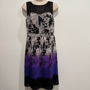 Adrianna Papell Dress Size 4 Pleated Chiffon Fit & Flare Ombré Black Purple
