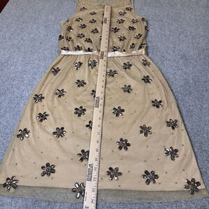 Adrianna Papell Dress Tan Gem Flowers sparkle Cocktail Evening Dress size 8