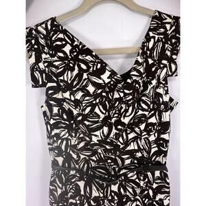 Adrianna Papell Dress - Women 12-Sleeveless - Dark Brown/White Design w/ Belt